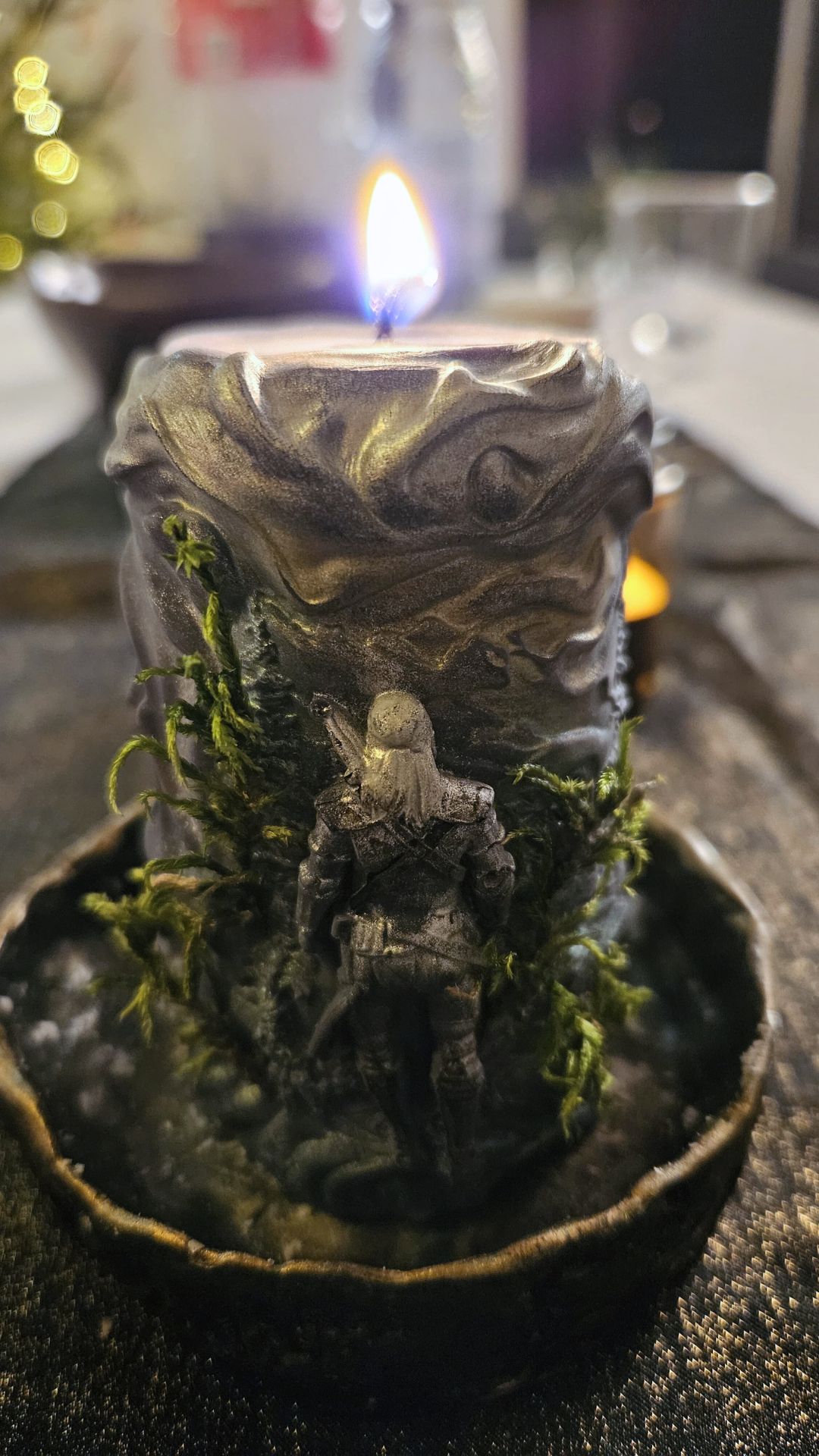 – ręcznie odlewana i zdobiona świeca sojowa o wymiarach ok. 9 cm wysokości