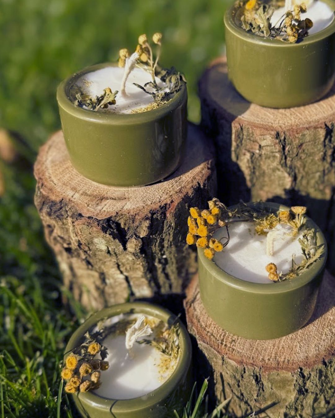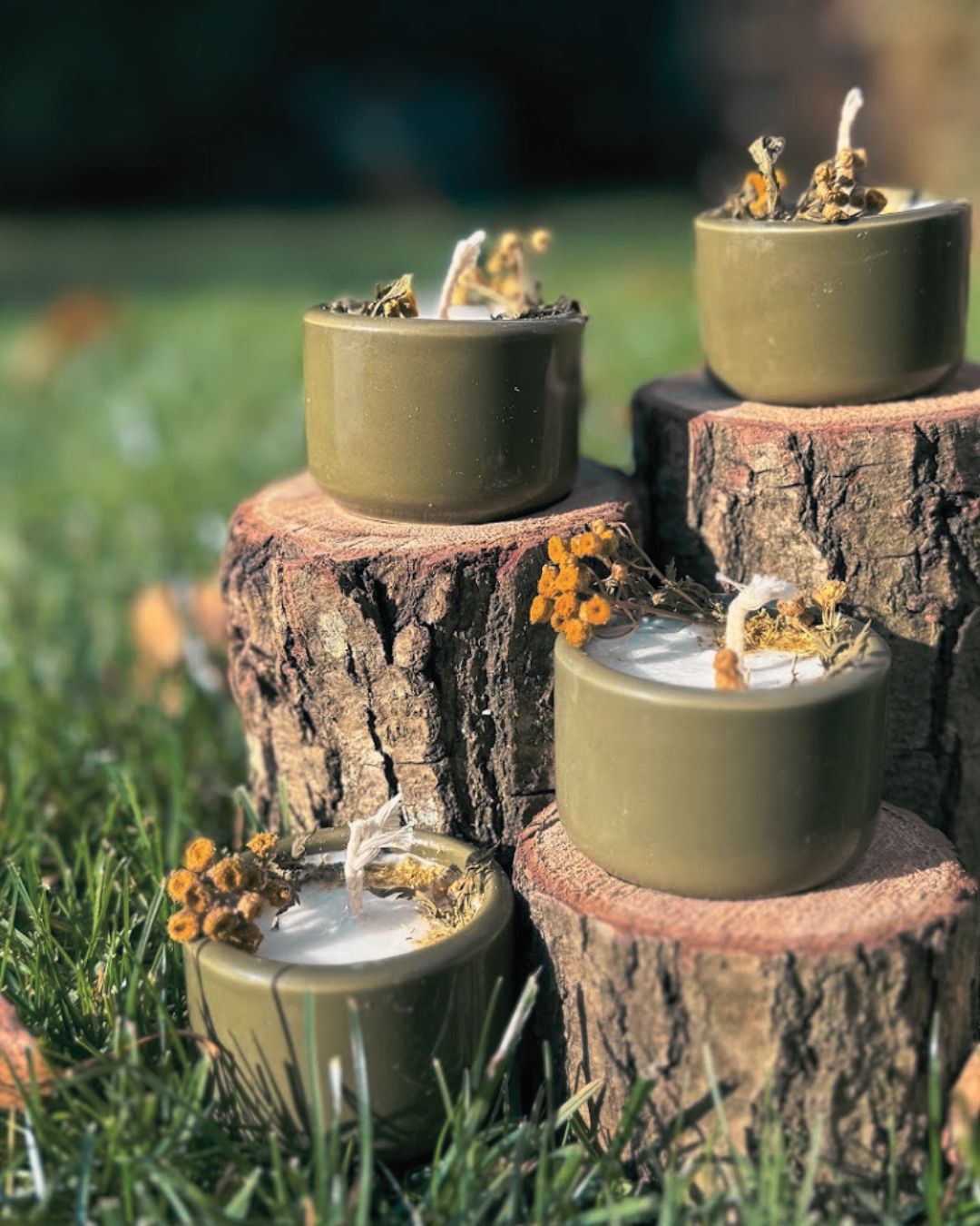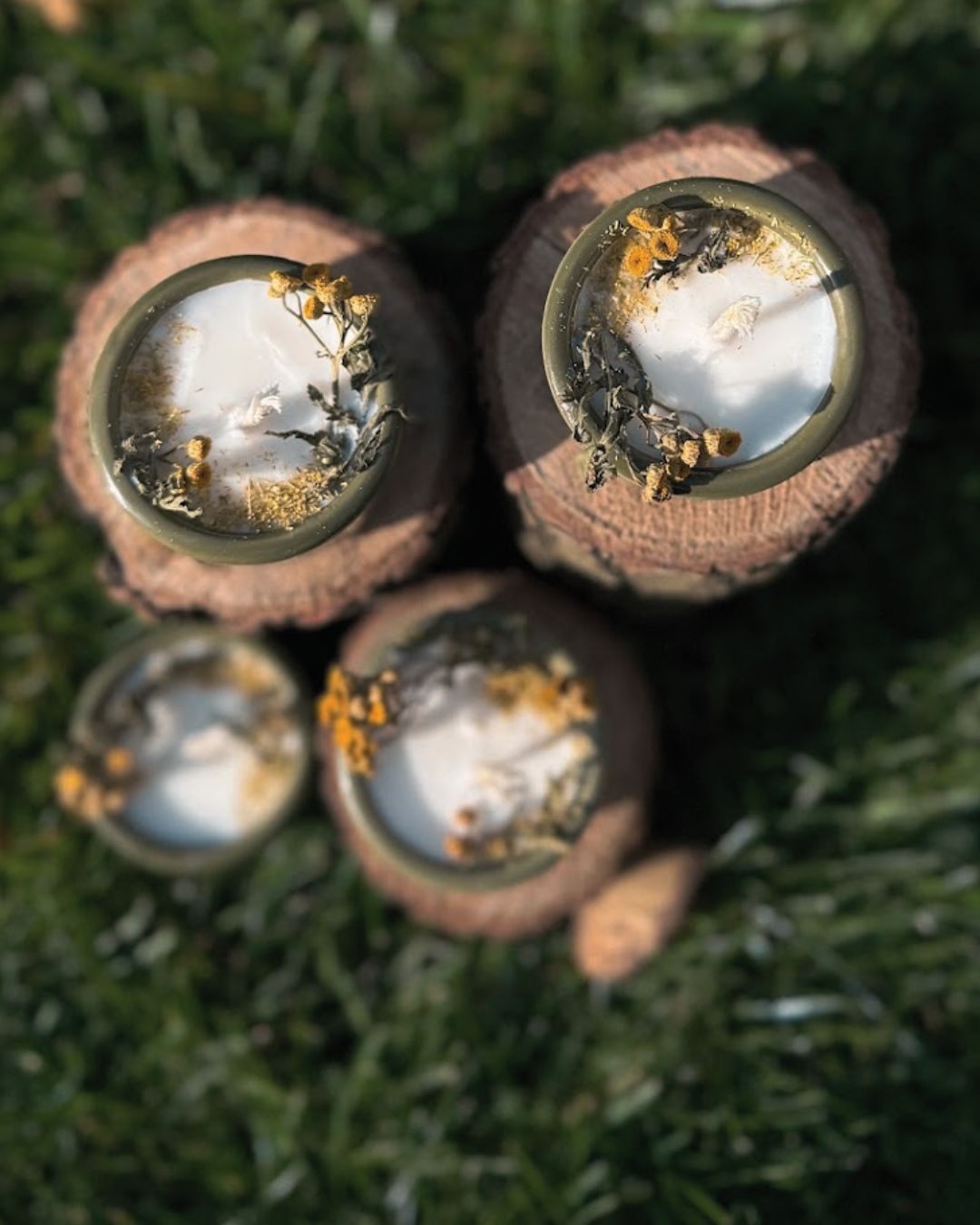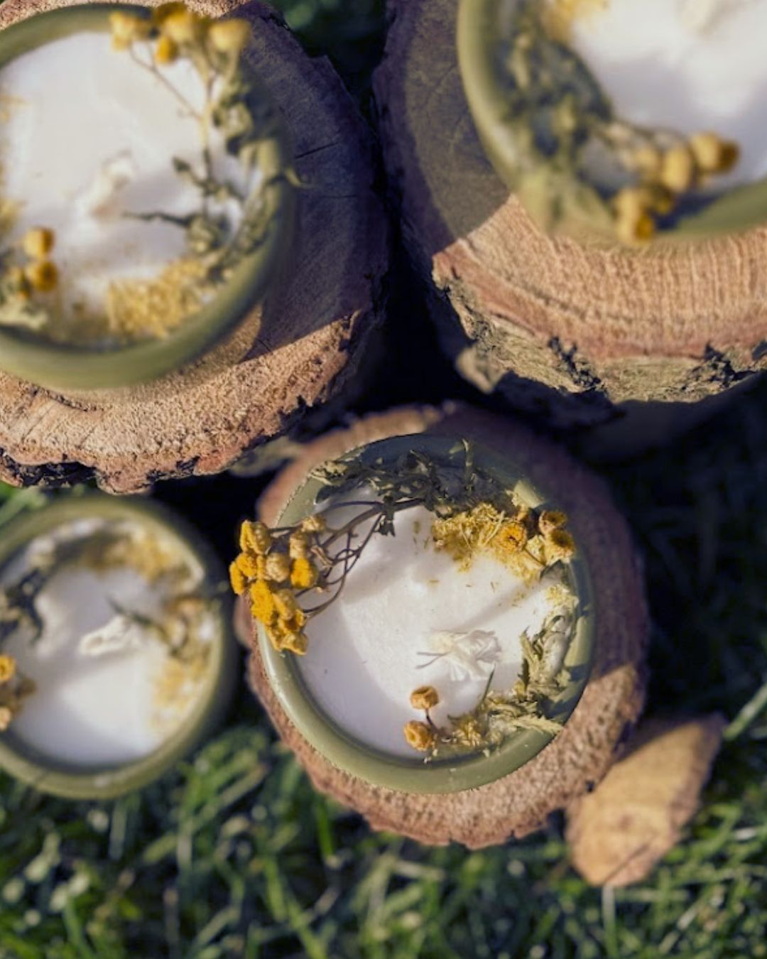 Złociste kwiaty, którymi ją ozdobiłam przypominają tarcze słońca – strażniczki światła. Kiedy płonie, uwalnia aromat dzikich łąk, gorzki i balsamiczny, niosący oczyszczenie i moc ziemi.