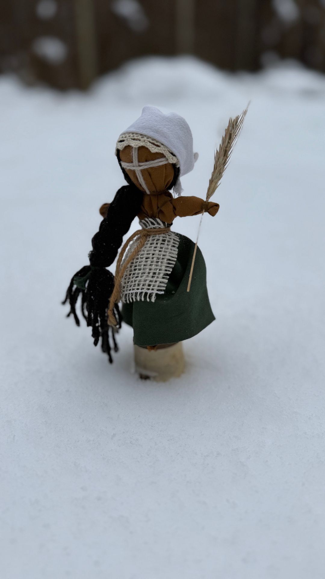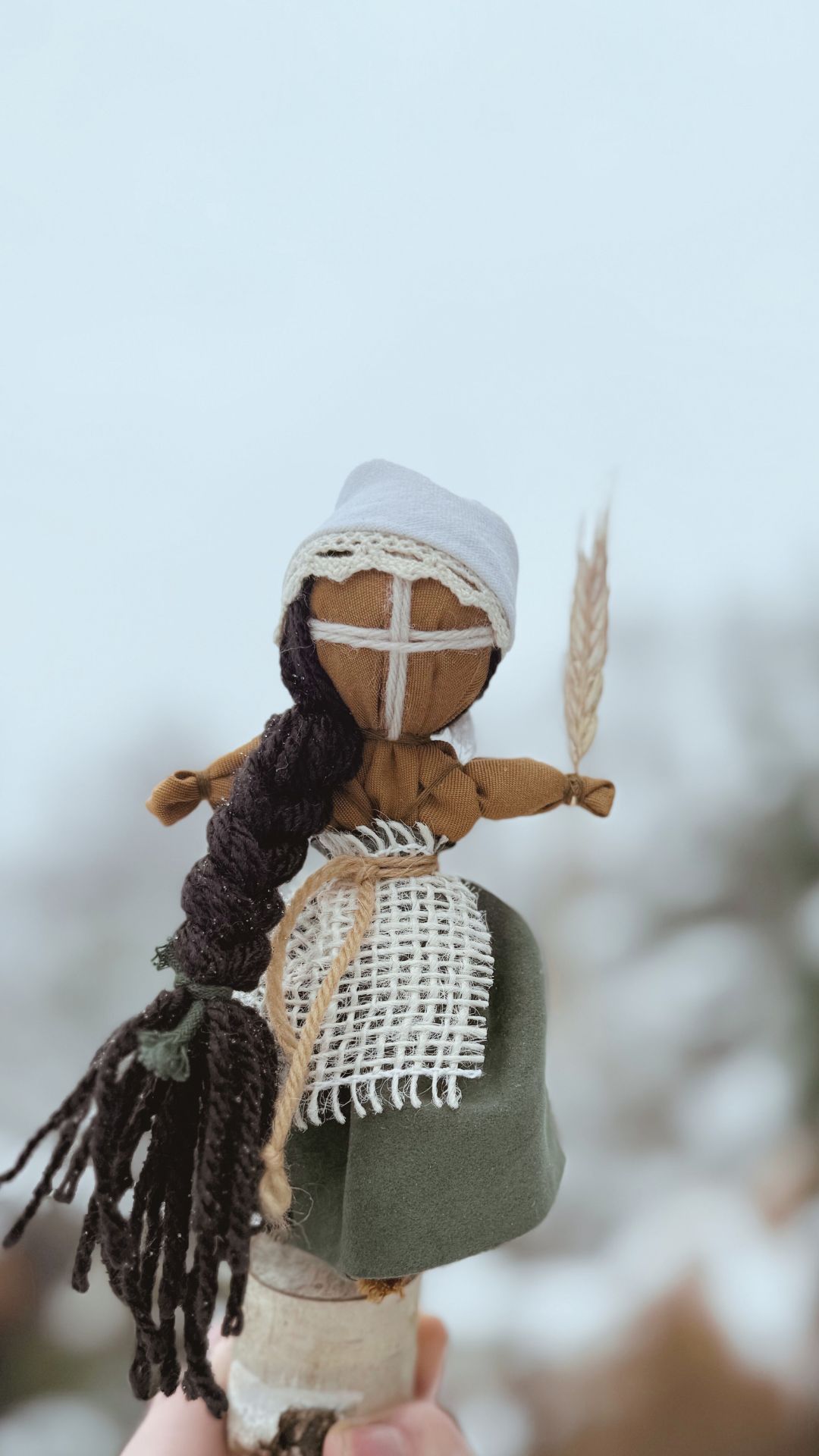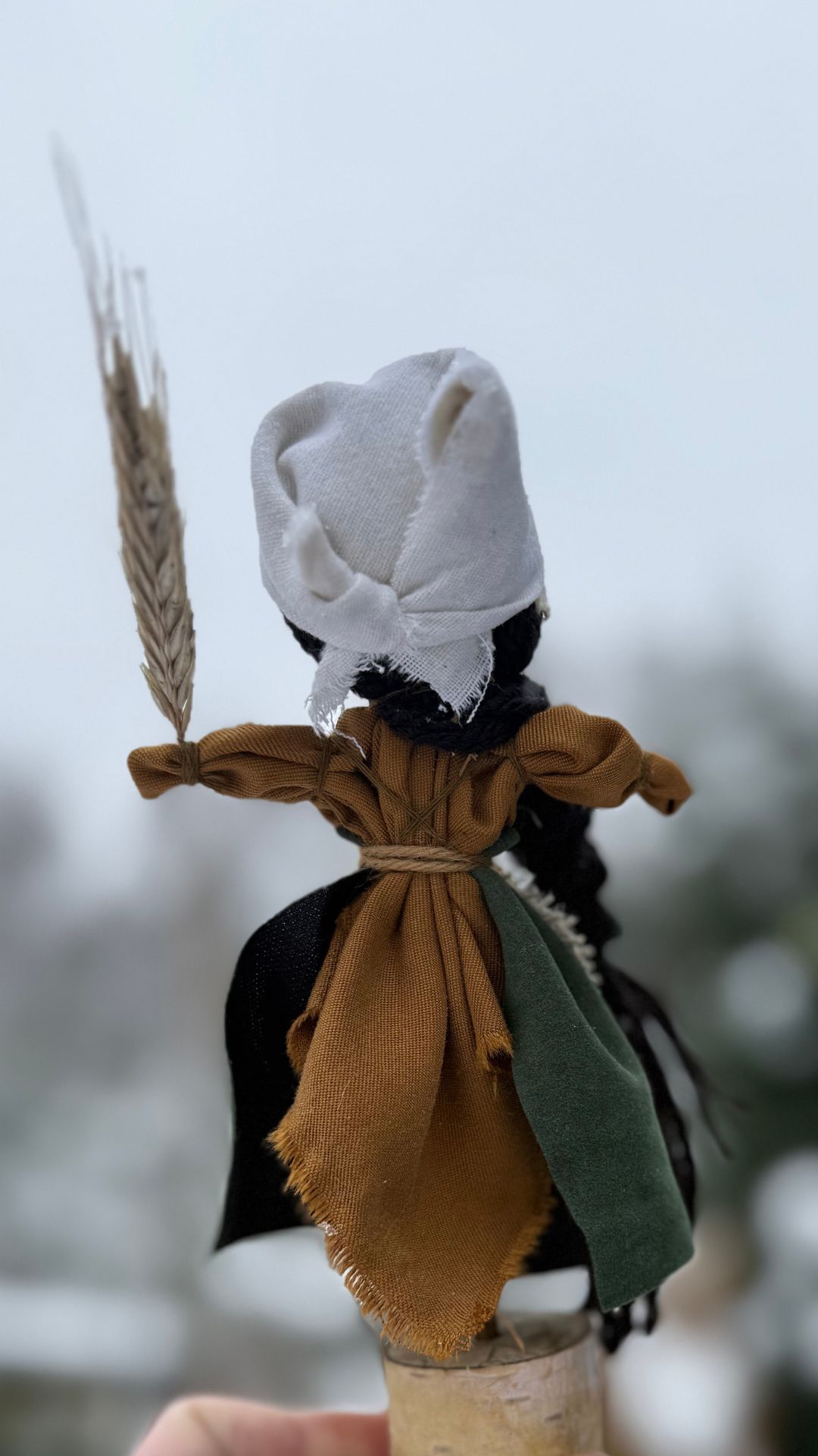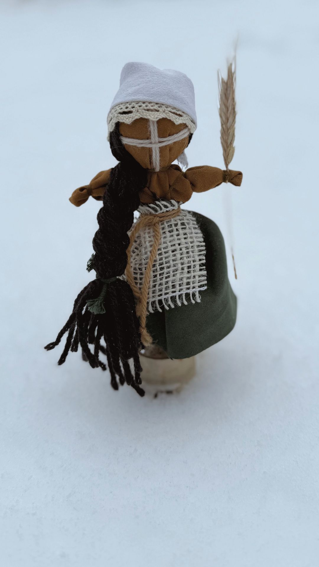 – lalka motanka wykonana tradycyjną metodą, bez szycia i klejenia. Środek wypełnia ekologiczne sianko, jej ciałko pokrywa materiał bawełniany. Posiada stojaczek brzozowy. Wysokość lalki to około 20 cm