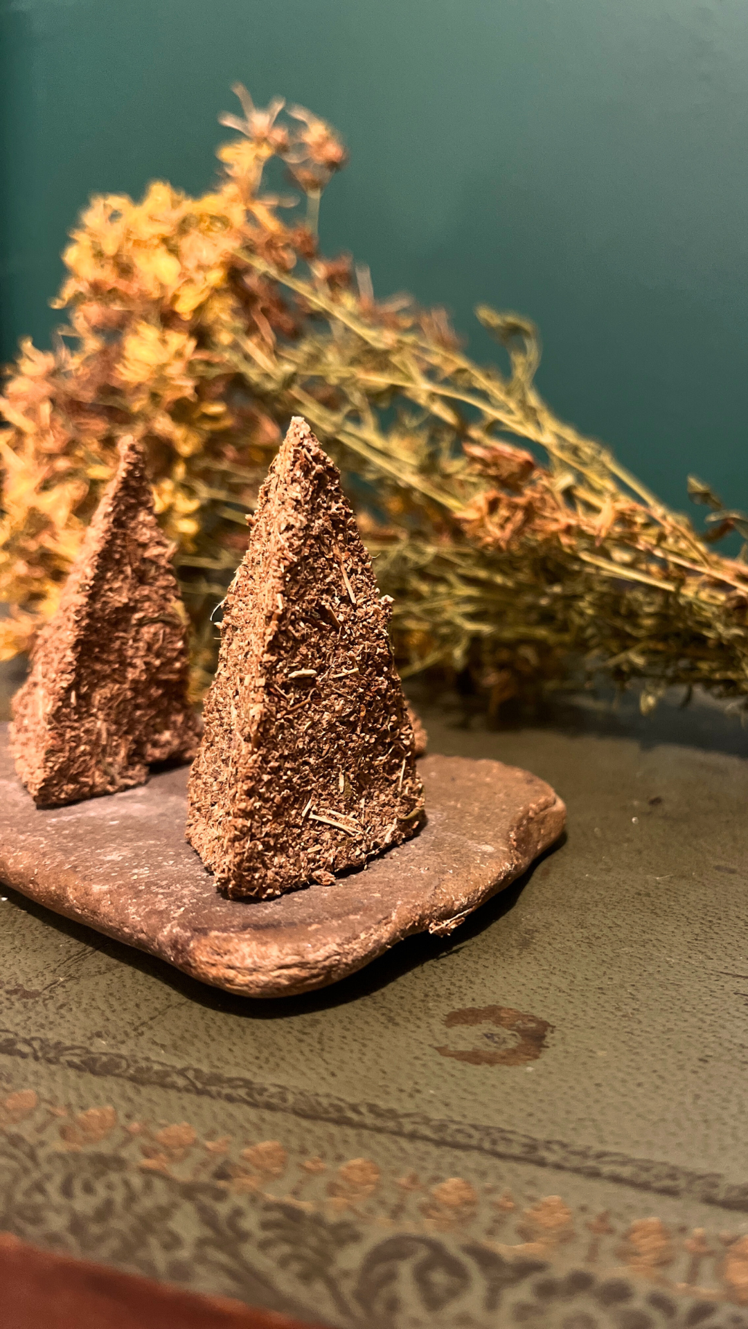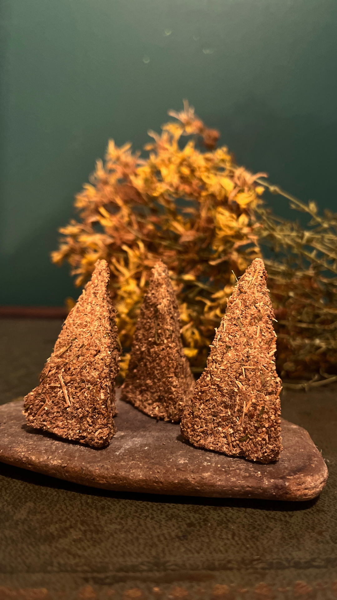 - 3 stożkowe kadzidła ze zmielonego ziela dziurawca i nasion kolendry