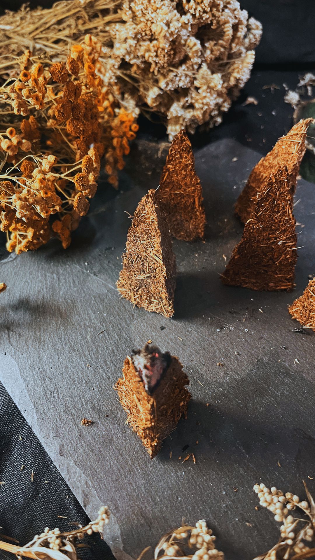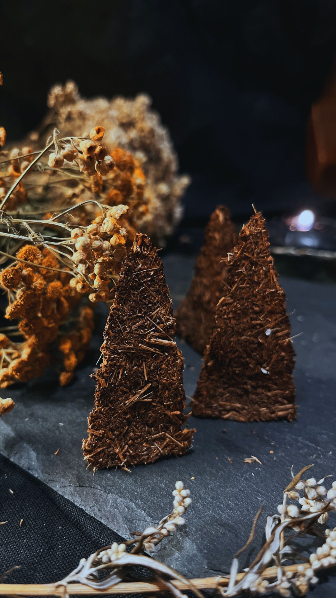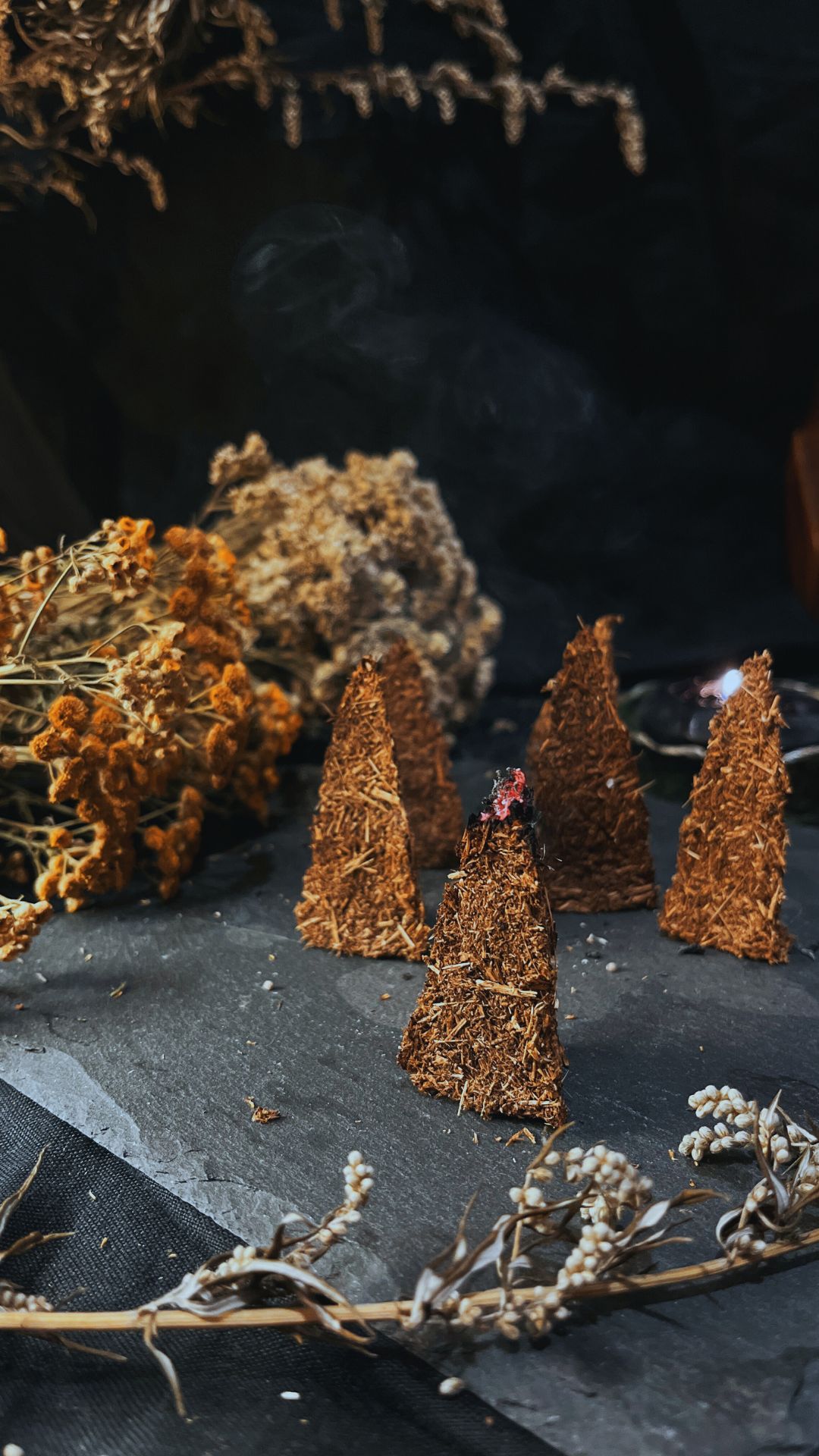 - 3 stożkowe kadzidła z mieszanki bylicy, wrotyczu i krwawnika.