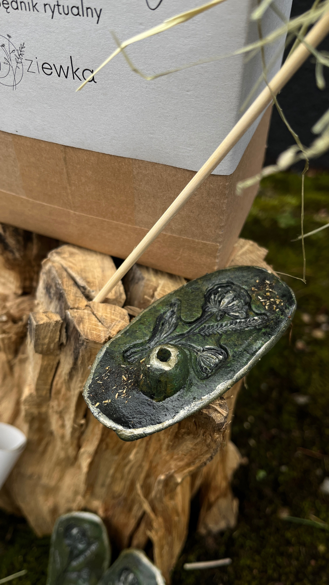 - Ręcznie Lepiona i Malowana Podstawka pod Kadzidło Pałeczkowe: Stwórzcie wyjątkowy klimat rytuału za pomocą pięknej podstawki. Każda z nich jest unikatowa, a jej ręcznie malowane wzory niosą ze sobą ducha dawnych obrzędów.