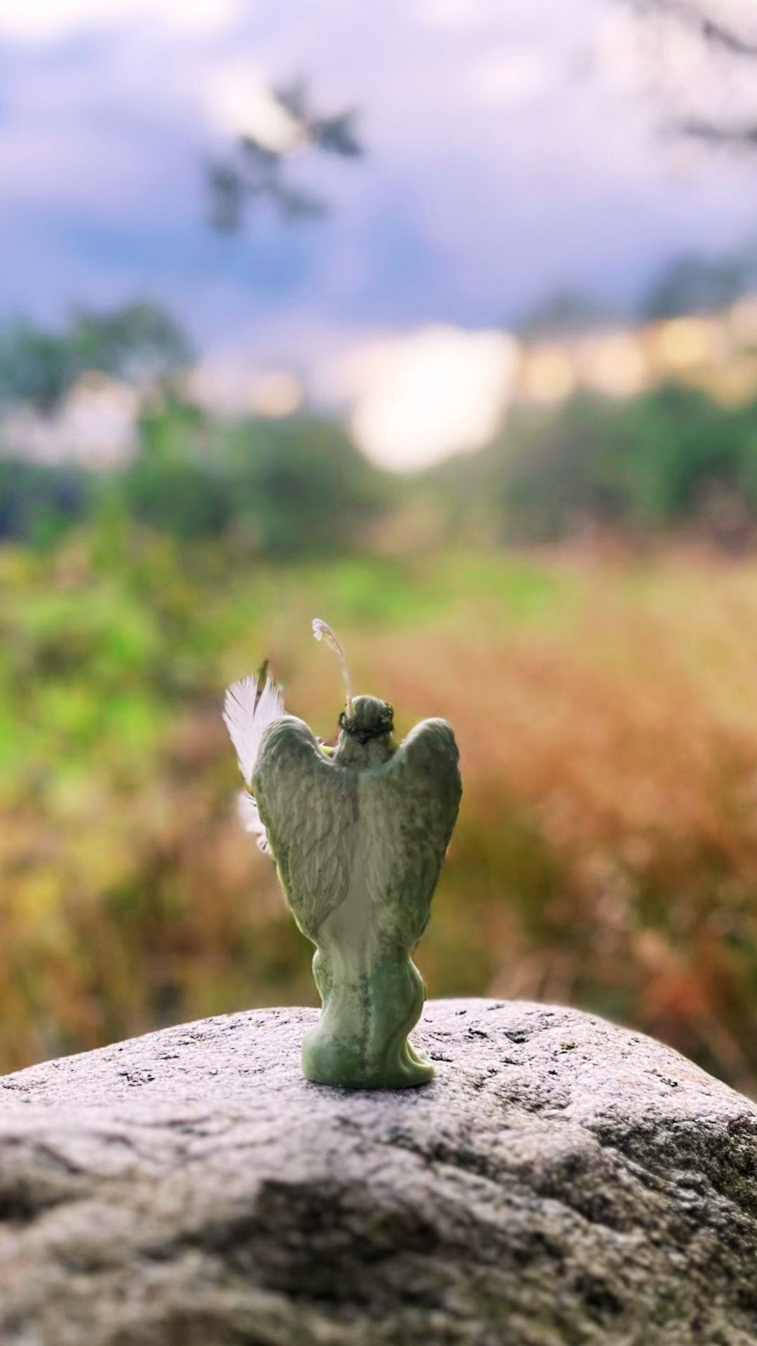 „Jestem Nadzieja. Narodziłam się z modlitw i szeptów, które unosiły się ku niebu w chwilach zwątpienia. Jestem światłem, które przychodzi, gdy wszystko zdaje się pogrążone w mroku. Moje skrzydła niosą cię ponad ciężarem smutku, a białe piórko przypomina o ochronie i czułości, które nigdy cię nie opuszczą. We włosy wplotłam wianek z mchu – miękkiego i wiecznego jak samo życie. On przypomina mi, że nawet tam, gdzie ziemia wydaje się martwa, w ukryciu rodzi się nowe życie. Tak i ja rosnę w ciszy, wśród cieni, w Twoim sercu – nawet wtedy, gdy myślisz, że mnie nie ma.