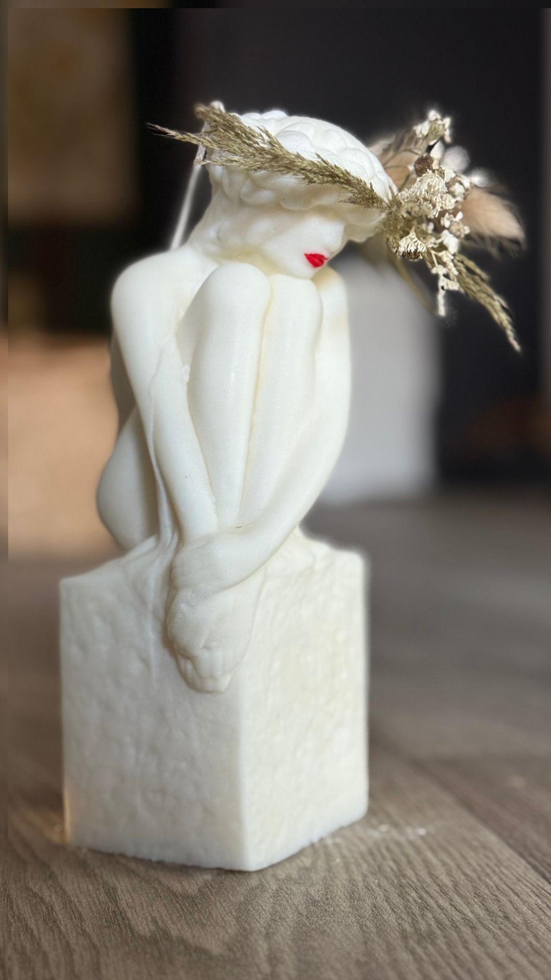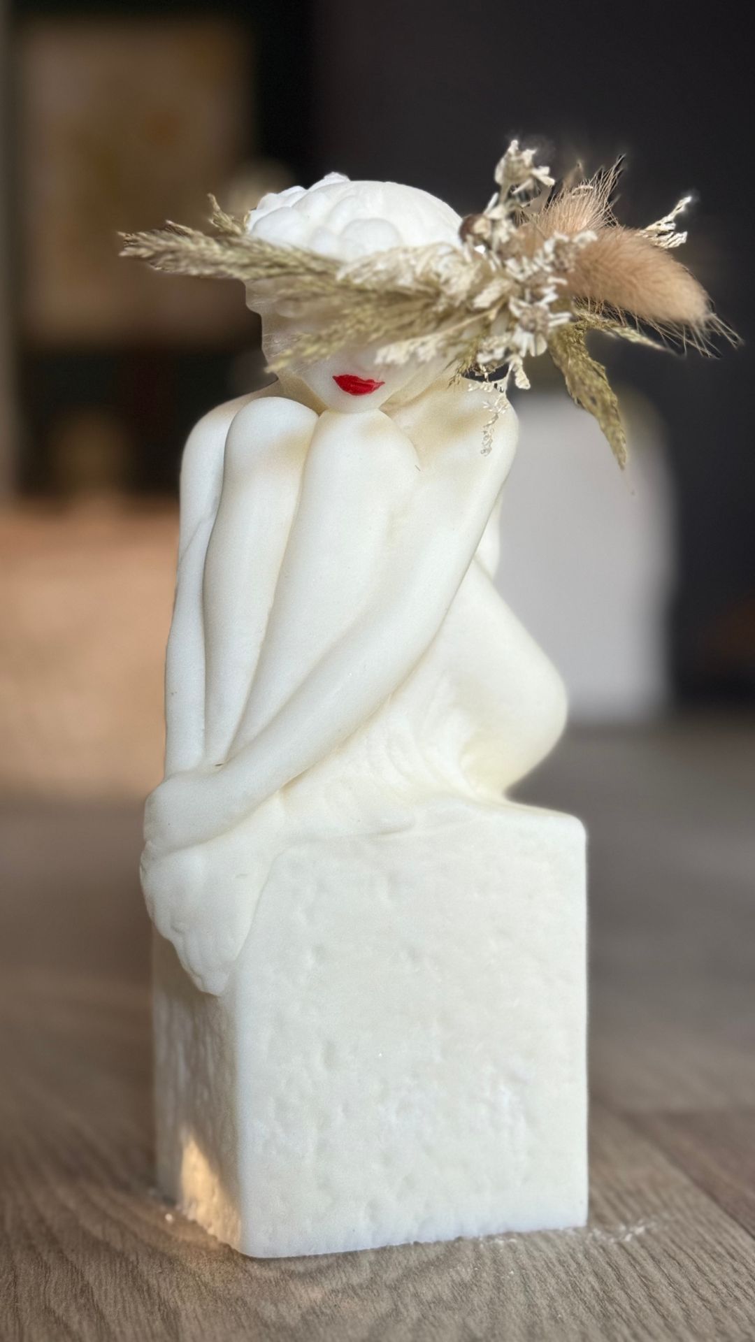 – ręcznie odlana i zdobiona świeca sojowa w rozmiarze XXL: 21 cm wysokości, 10 cm szerokości i 10cm głębokości oraz wadze aż 710 g