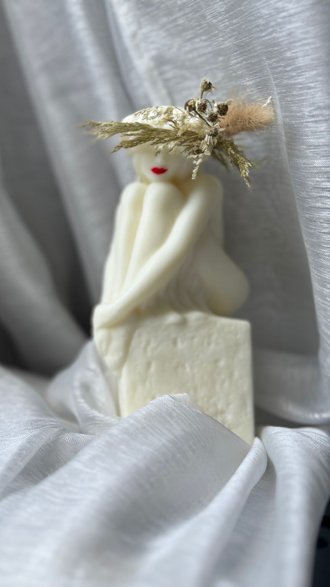 Kasia to esencja łagodności. Jej wianek z traw w bieli i beżu symbolizuje cichy powrót do siebie – do prostoty, do oddechu, do spokoju, który nie musi być głośny, by być prawdziwy. Kasia przypomina kobietom, że nie trzeba pędzić, by być wartościową. Że czasem największą mocą jest umiejętność zatrzymania się.