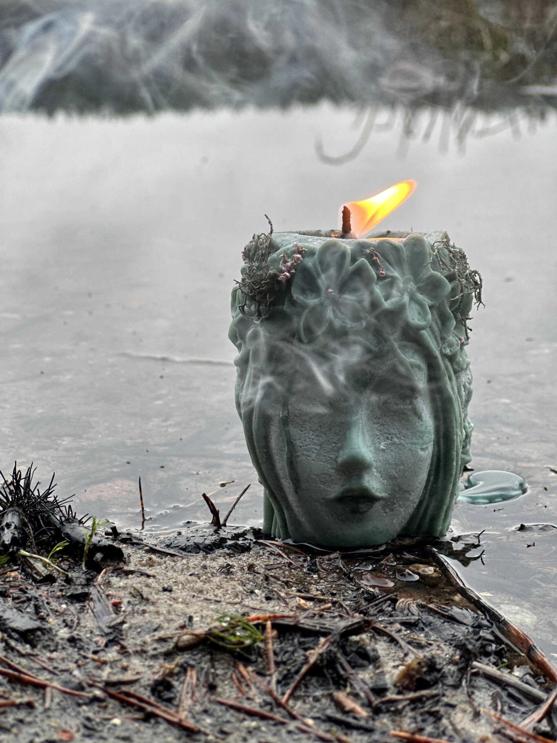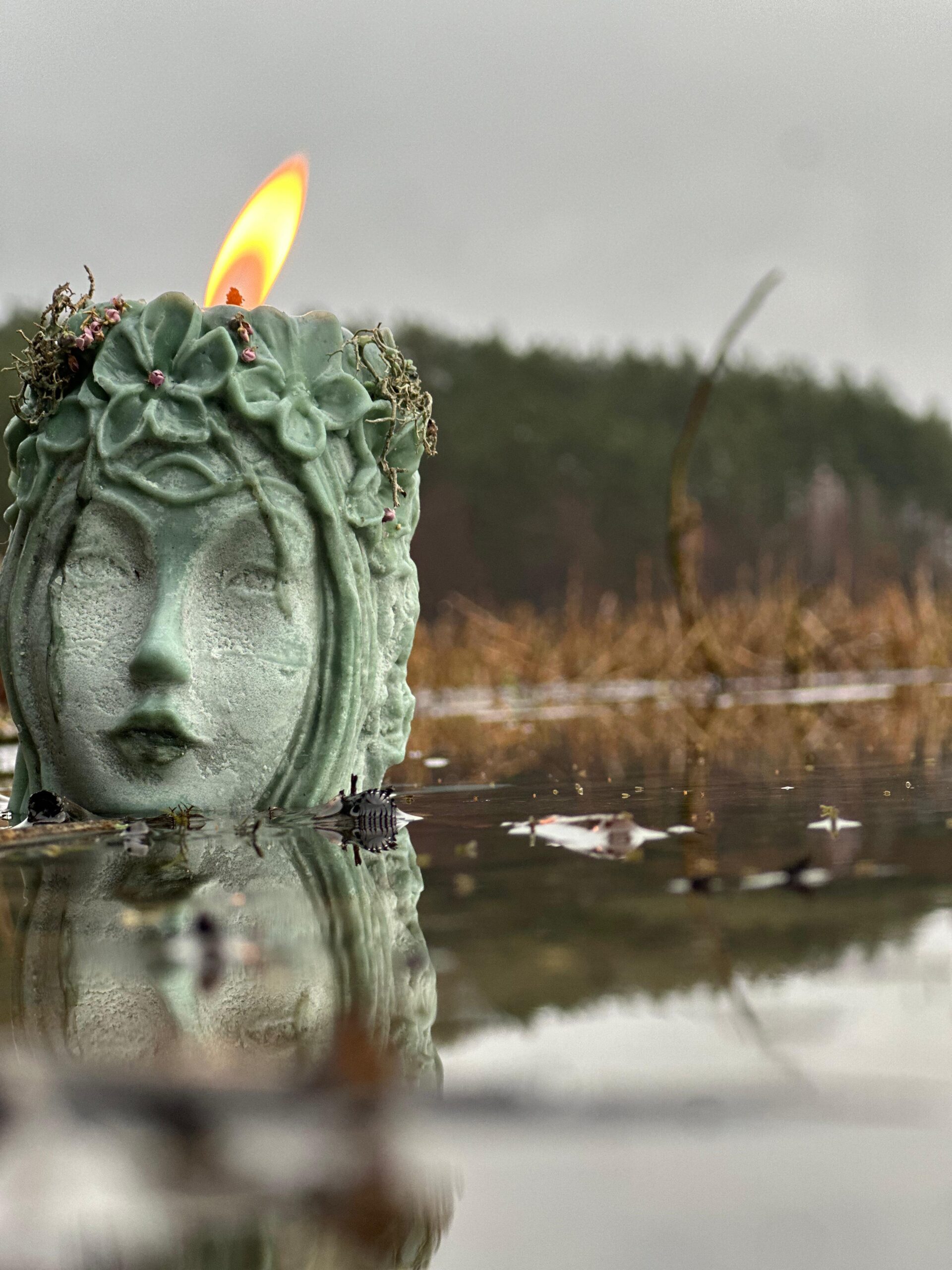Jestem Dziewką Borową, świecącą w blasku wieczornej ciszy, skrywającą w sobie tajemnice i bogactwo kaszubskich borów. Mój płomień tańczy z gracją na wietrze, przywołując wspomnienia szumiących drzew… To w moim ogniu ukryte są skarby natury, harmonia i spokój. W moim wnętrzu skrywam esencję borów kaszubskich – ziemię pełną życia, wonnych ziół, świeżości lasów i szumu wód. Gdy płonę, uwalniam delikatne nuty sosnowego zapachu, który przeniesie Cię w świat, gdzie czas płynie spokojnie, a życie to tańce wśród przyrody…”