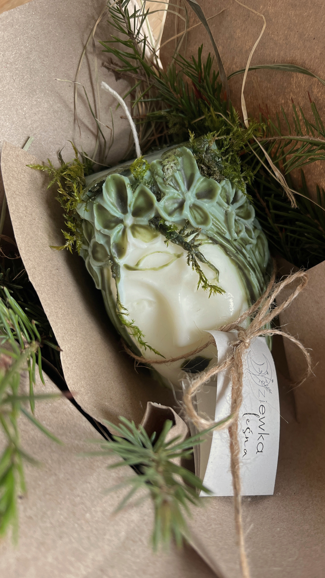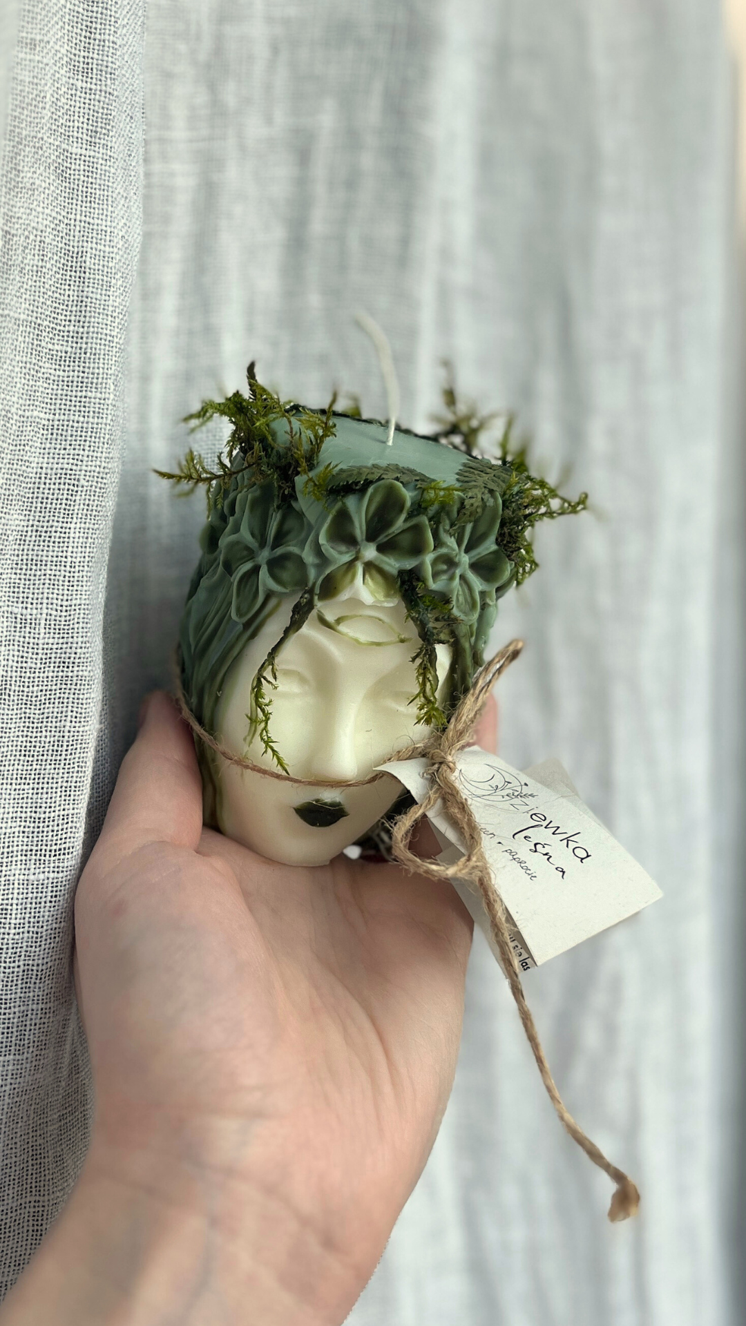 Magia natury objawia się w tej wyjątkowej świecy bryłowej – Dziewce Leśnej. Każdy jej detal został starannie ręcznie wykonany, głowa została udekorowana mistycznym wiankiem z delikatnego mchu i finezyjnych liści paproci, nadając jej niezwykły, artystyczny charakter. To nie tylko świeca, to prawdziwe dzieło sztuki, które przenosi Cię w świat leśnych zakątków, gdzie magia splata się z naturą.