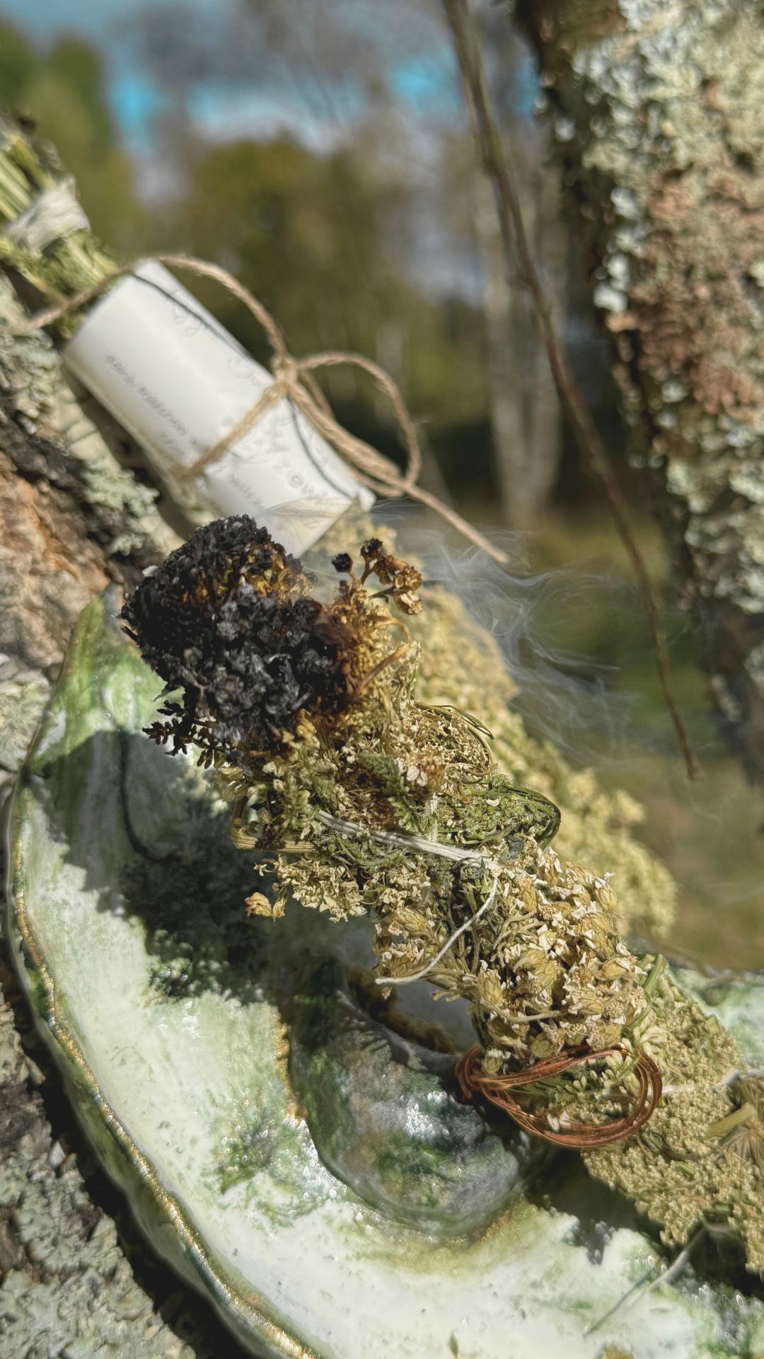 Moje zioła niosą w sobie moc światła i uzdrawiającej energii. Dziką marchew oplata mnie subtelną ochroną i wzmacnia jasność wizji, biały nostrzyk koi serce i przyciąga spokój, a krwawnik leczy rany – te widoczne i te ukryte głęboko w duszy. Gdy płonę, otulam Cię czystym, białym dymem, który oczyszcza, harmonizuje i budzi wewnętrzną siłę. Jestem Twoją strażniczką dobrych zamiarów i magicznej jasności.