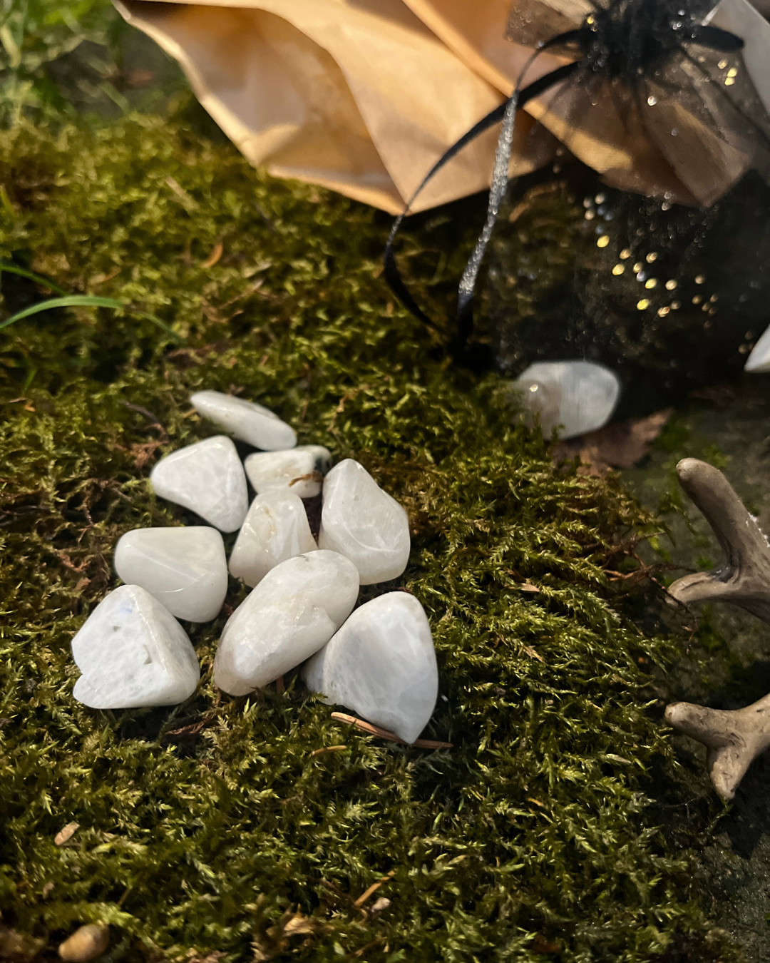 - Kamień księżycowy – jako prezent, który dopełnia całość zestawu. Ten wyjątkowy minerał wspiera intuicję, równowagę emocjonalną i połączenie z energią Księżyca (1 szt.)