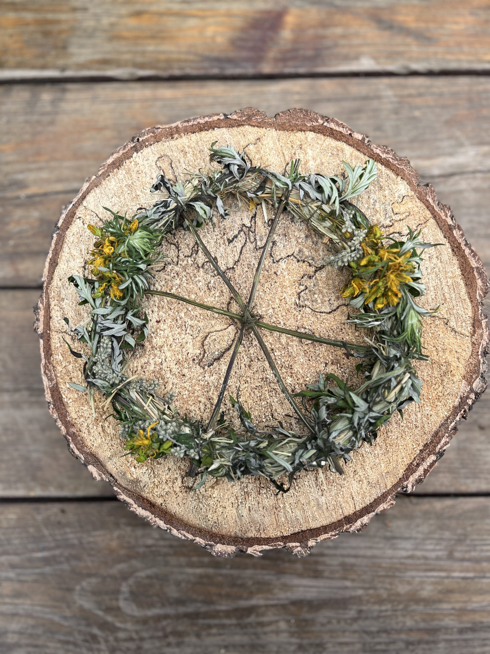 Starannie wypleciony wianek z bylicy, dziurawca i sianka. Każdy wianek jest unikalnym dziełem rzemiosła, łączącym tradycję z naturą. Ten wianek to nieodłączna część pradawnych obrzędów, symbolizujących płodność, miłość i oczyszczenie.