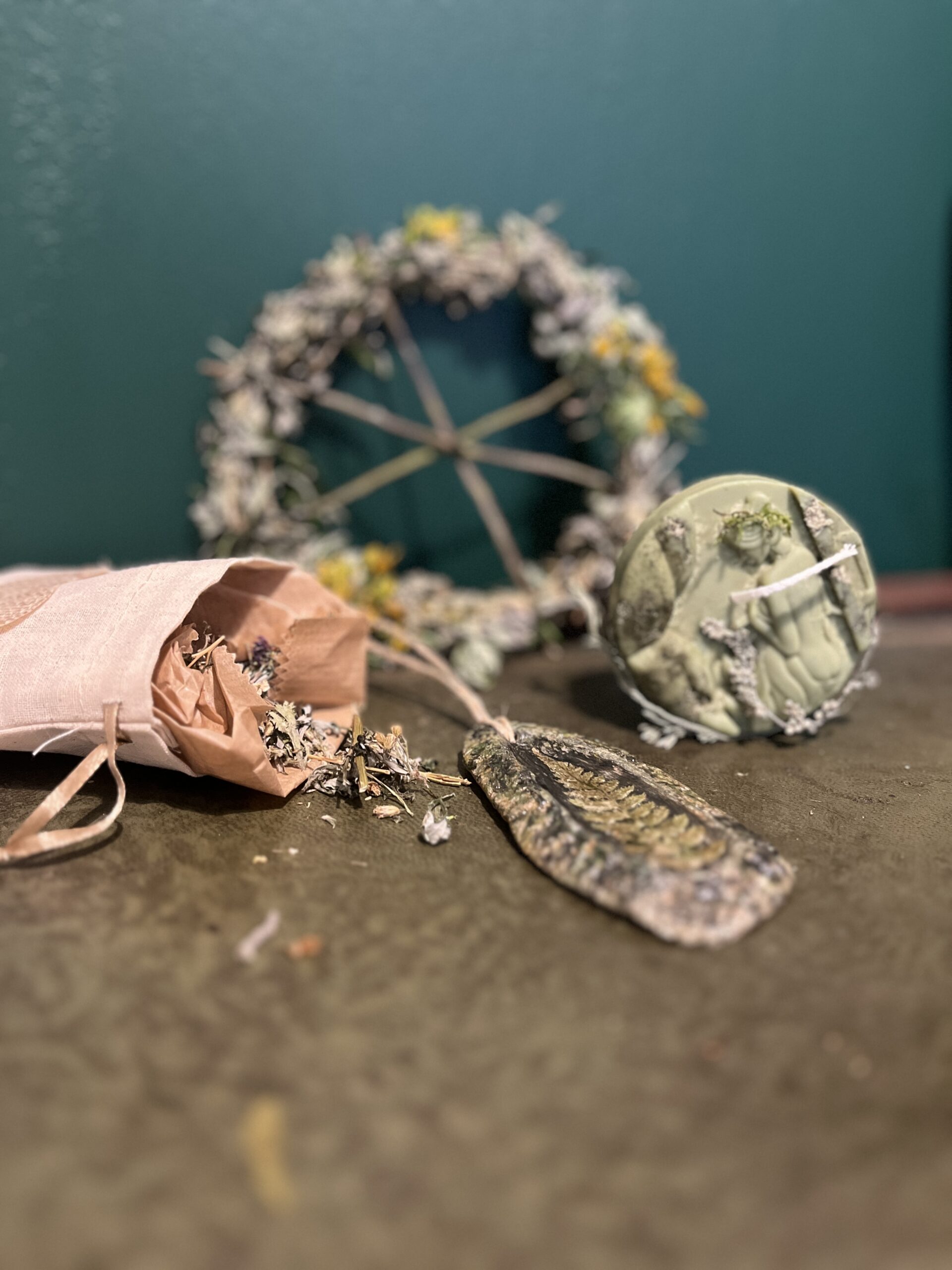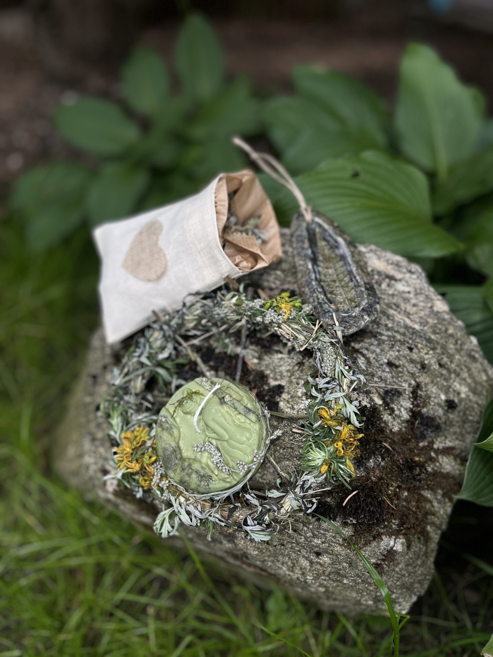 Niezbędnik rytualny na Noc Kupały – Dziewka Kupały, Wianek kupalny, Garść ziół do ogniska, Zawieszka „Kwiat Paproci”