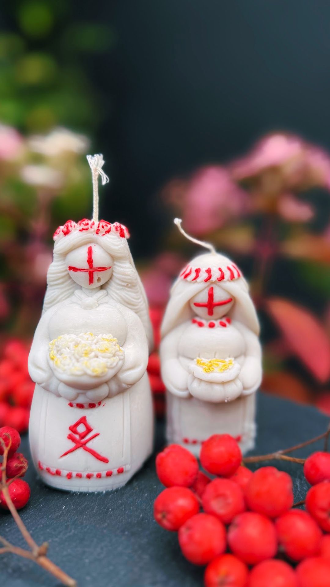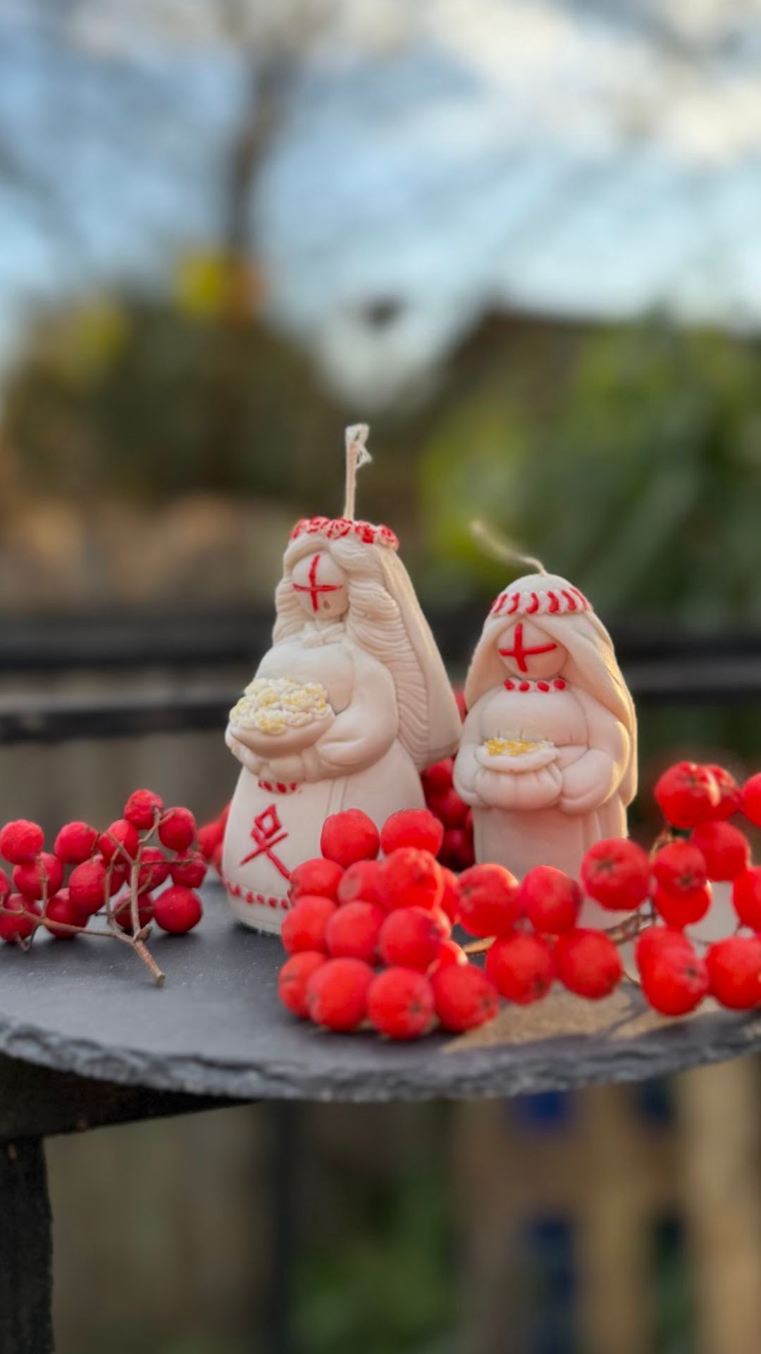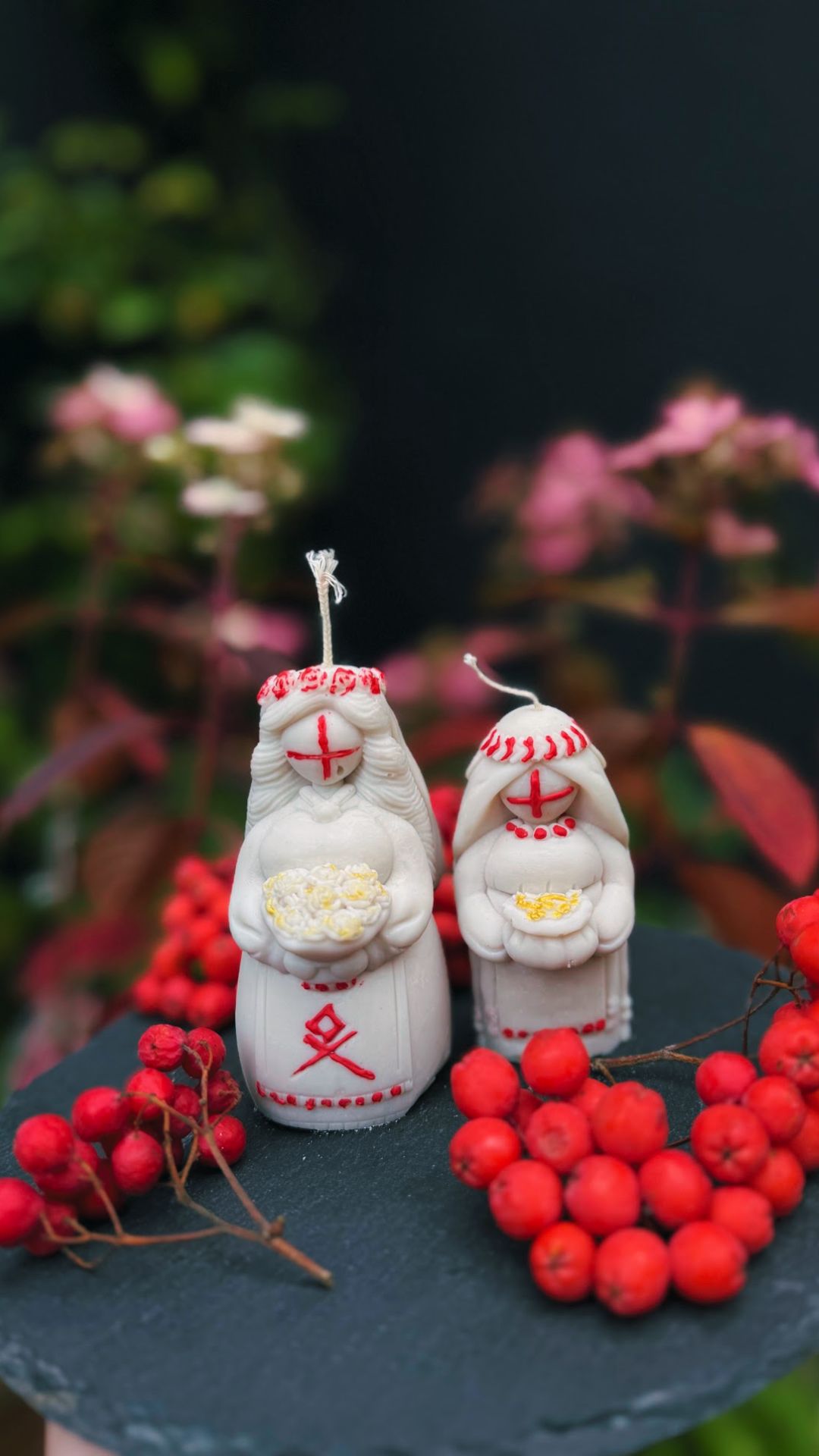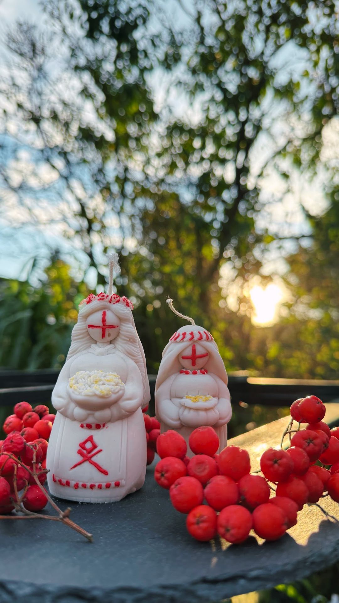 Zestaw „Motanki” to dwie wyjątkowe świece inspirowane dawnym słowiańskim rytuałem tworzenia laleczek–amuletów. Motanki od wieków towarzyszyły kobietom w codziennym życiu – strzegły domowego ogniska, przyciągały pomyślność, chroniły przed złymi urokami i pomagały w spełnianiu pragnień.